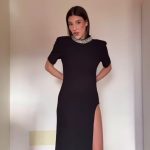 Φόρεμα μαύρο μακό με λεπτομέρειες από στρας στο λαιμό…Κ βαθύ άνοιγμα στο πλαϊ.!Εφαρμόζει τέλεια ιδανικό για βραδυνή έξοδο!